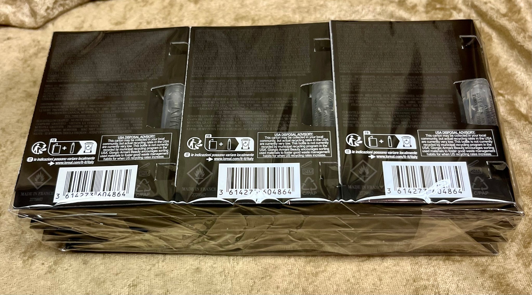Sealed never opened package of Armani Code Parfum Giorgio Armani 12X Samples 1.2 Ml. 0.04 Fl. Oz. Spray